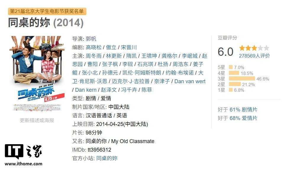 不过有郭帆范例在前,他曾拍出豆瓣评分 6.0 的《同桌的妳》,随后就拍了《流浪地球》,所以还是可以期待一下,到底是不是先拿一部爱情片“打窝”。