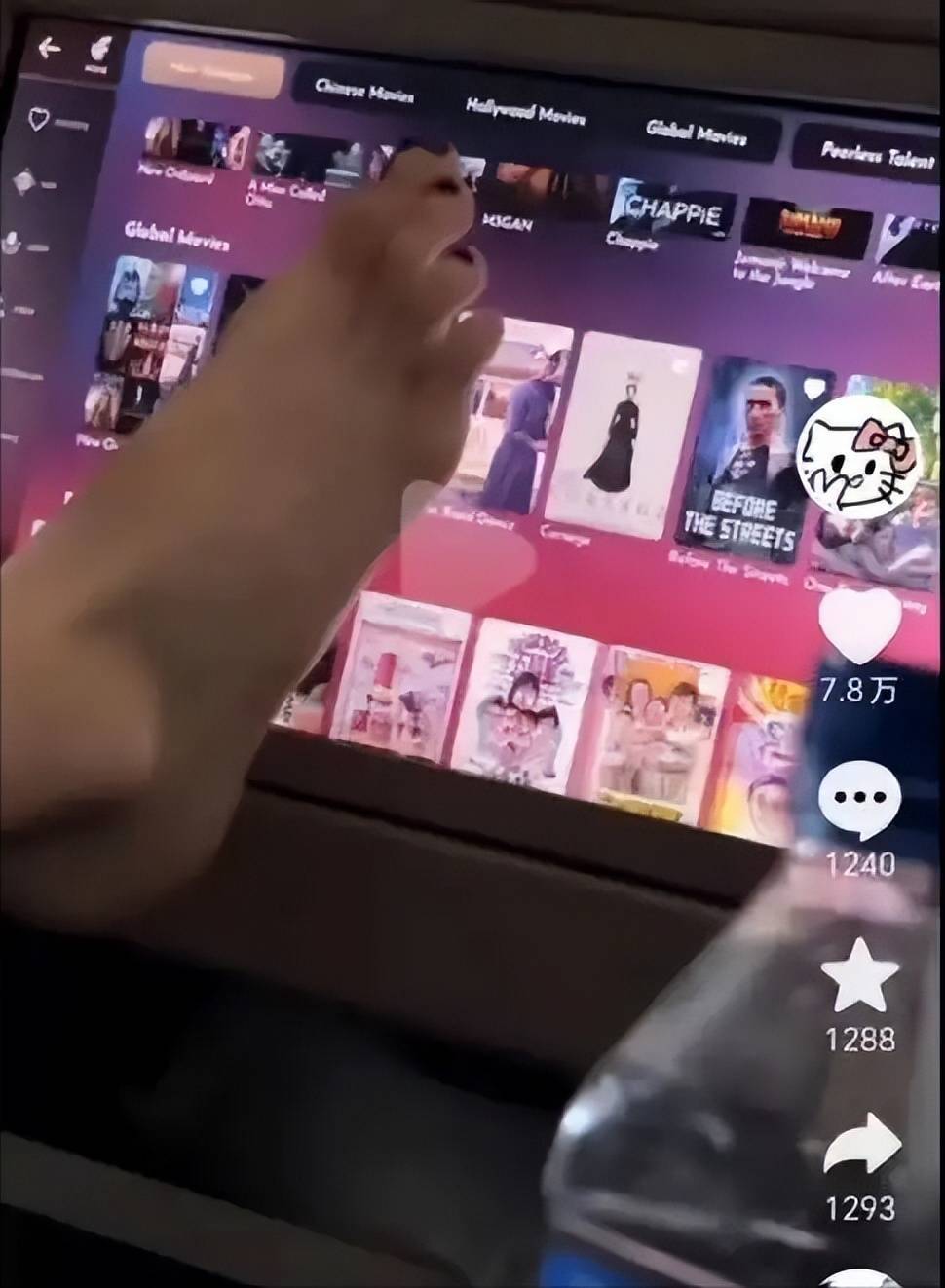 有网友扒出,考拉有次在飞机上,竟用脚操控屏幕。