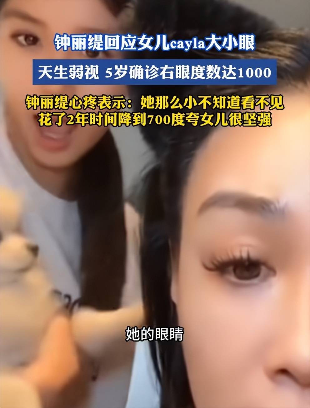 此前钟丽缇曾爆料,考拉出生后眼睛患病。