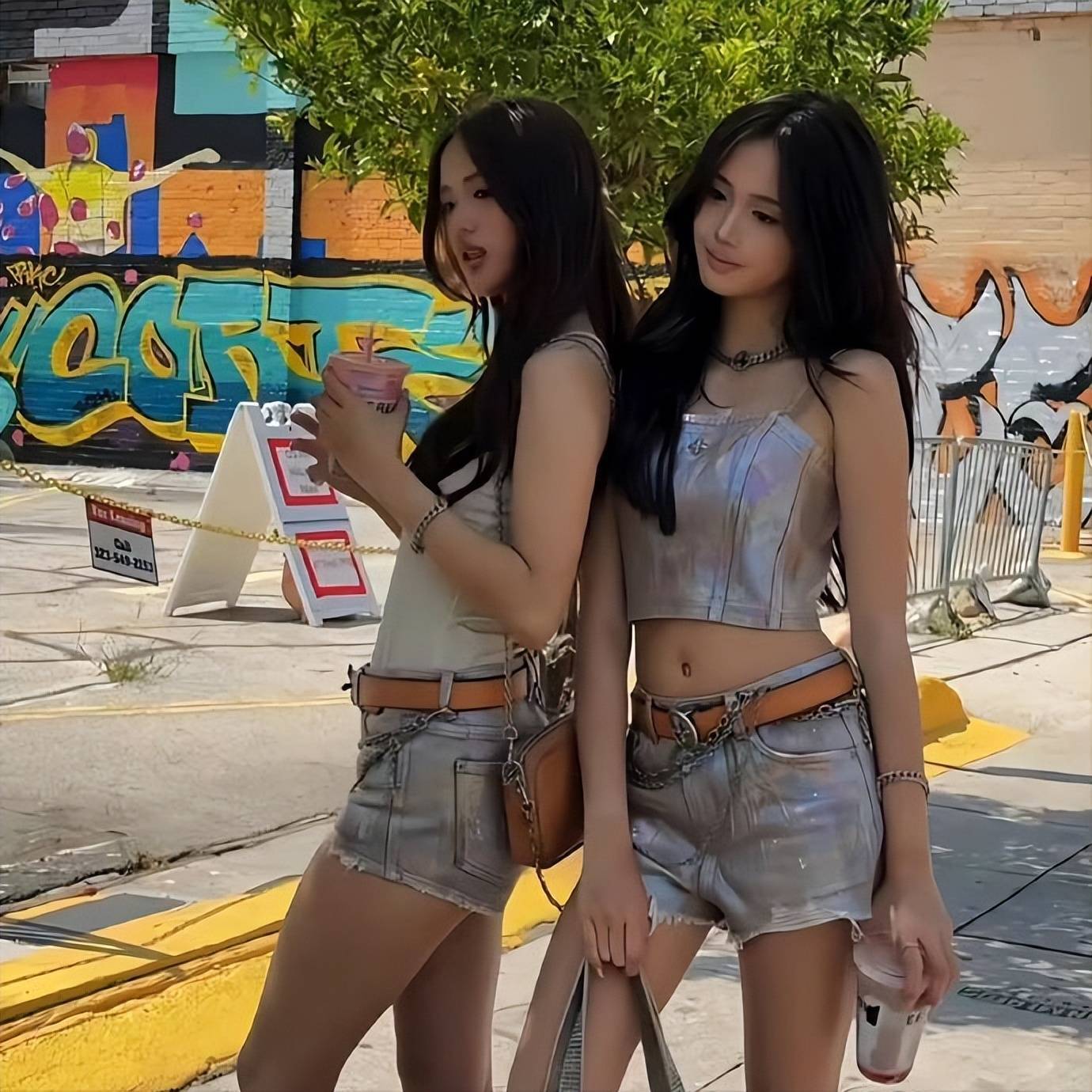 关键不在于镜头中间的两个女生,而是右下角的一双腿。