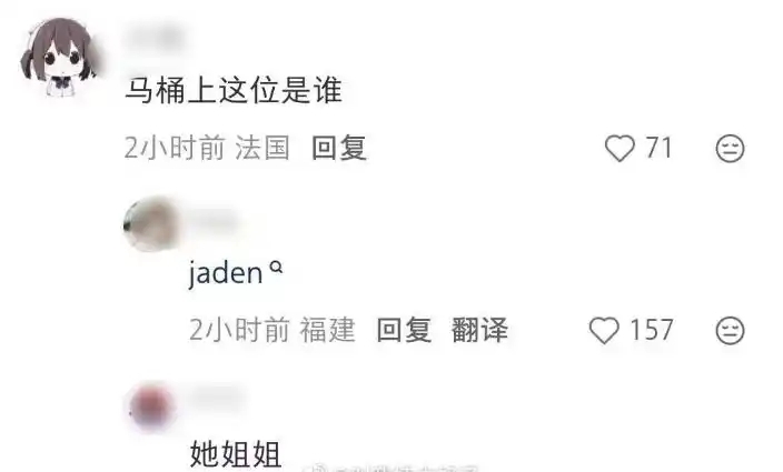 有人询问“马桶上的女生是谁”,随后有人回答“她姐姐Jaden”。
